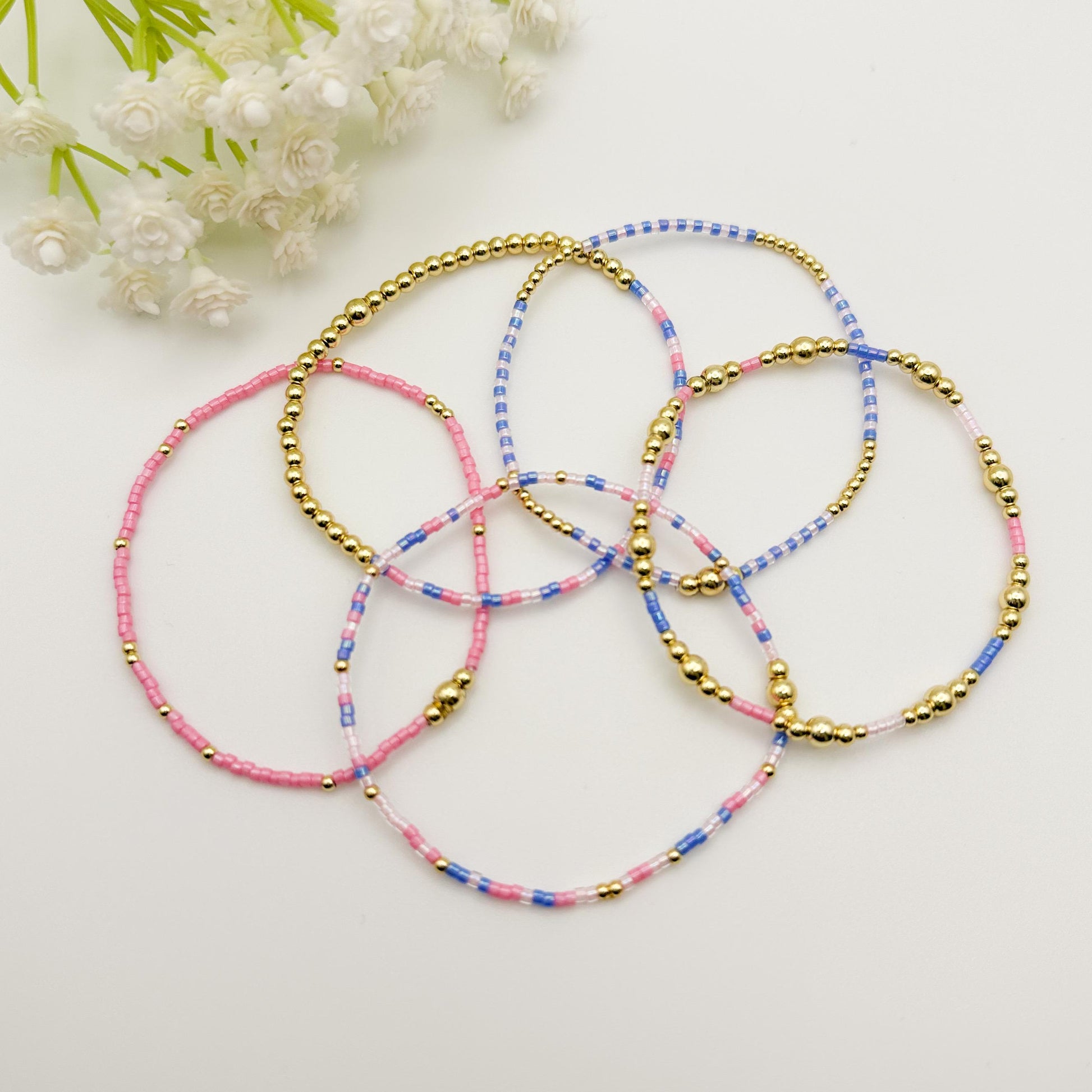 ~ This bracelet stack is crafted from high quality Japanese seed beads along with 18k gold filled beads