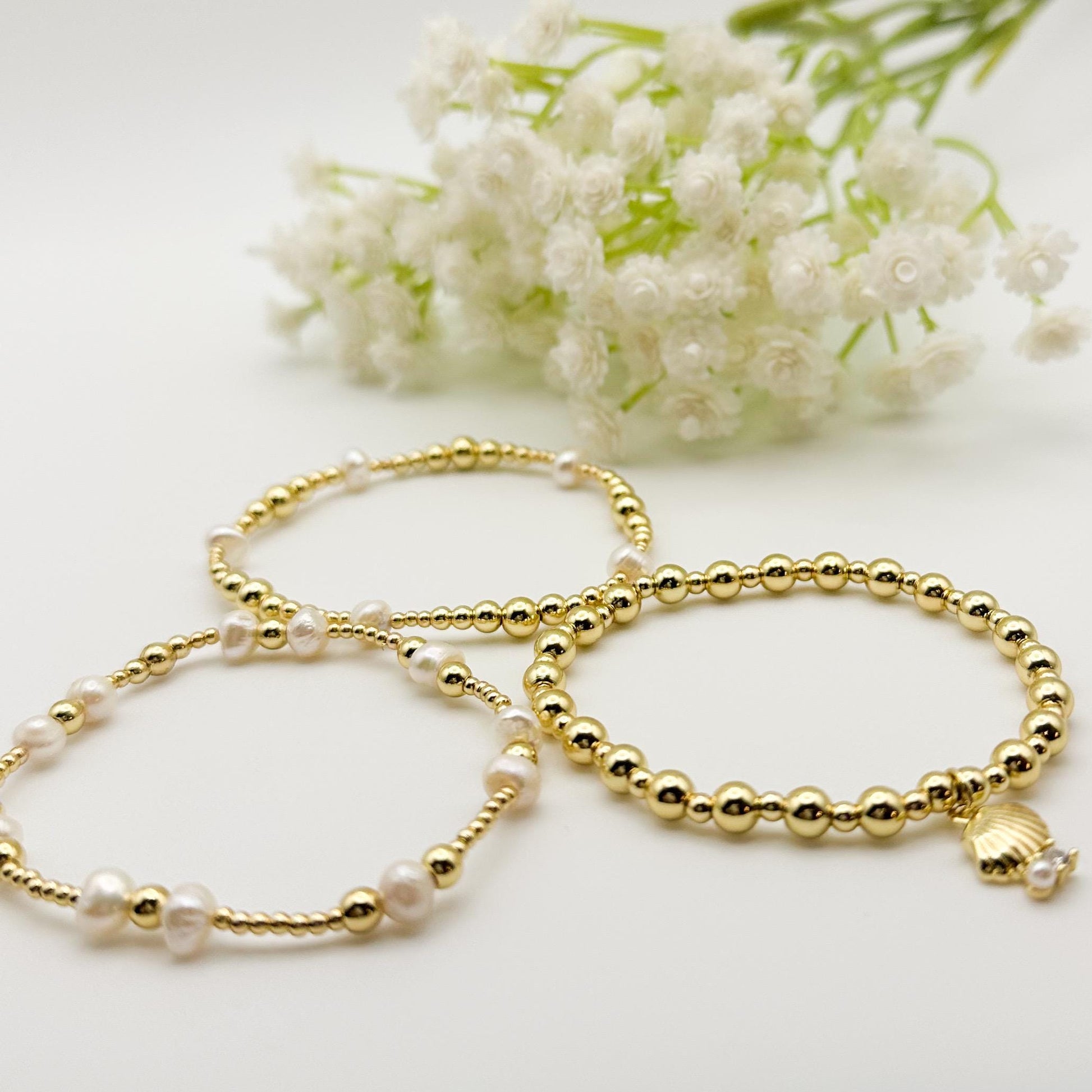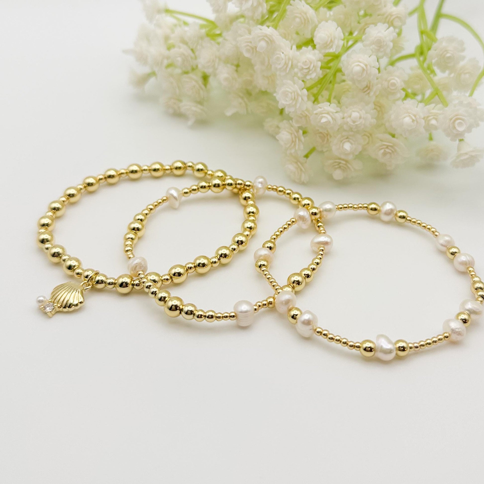 ~ This bracelet stack is crafted from natural cultured pearls along with 18k gold filled beads