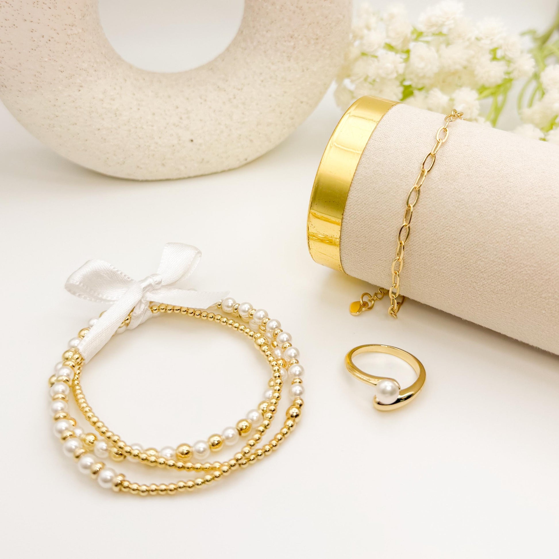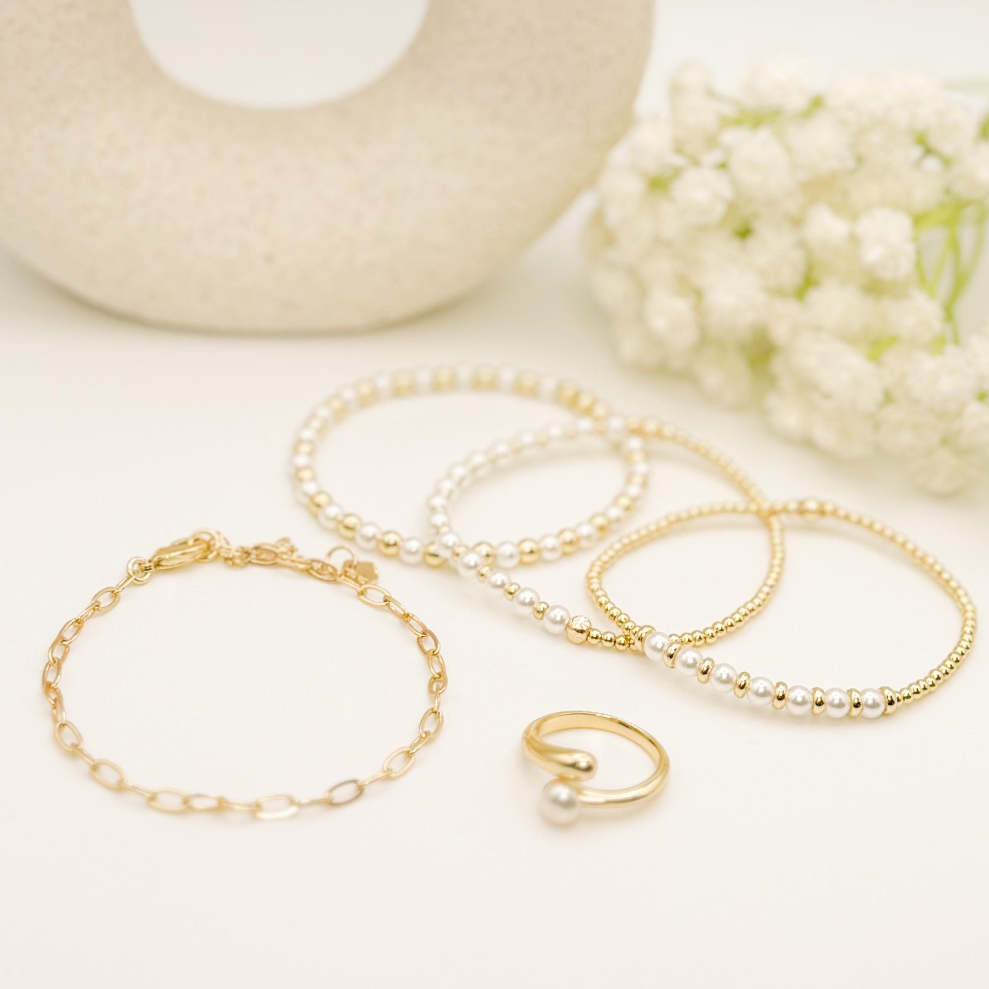Gold Filled Pearl Jewelry Gift Box | Beaded Bracelets & Ring Set