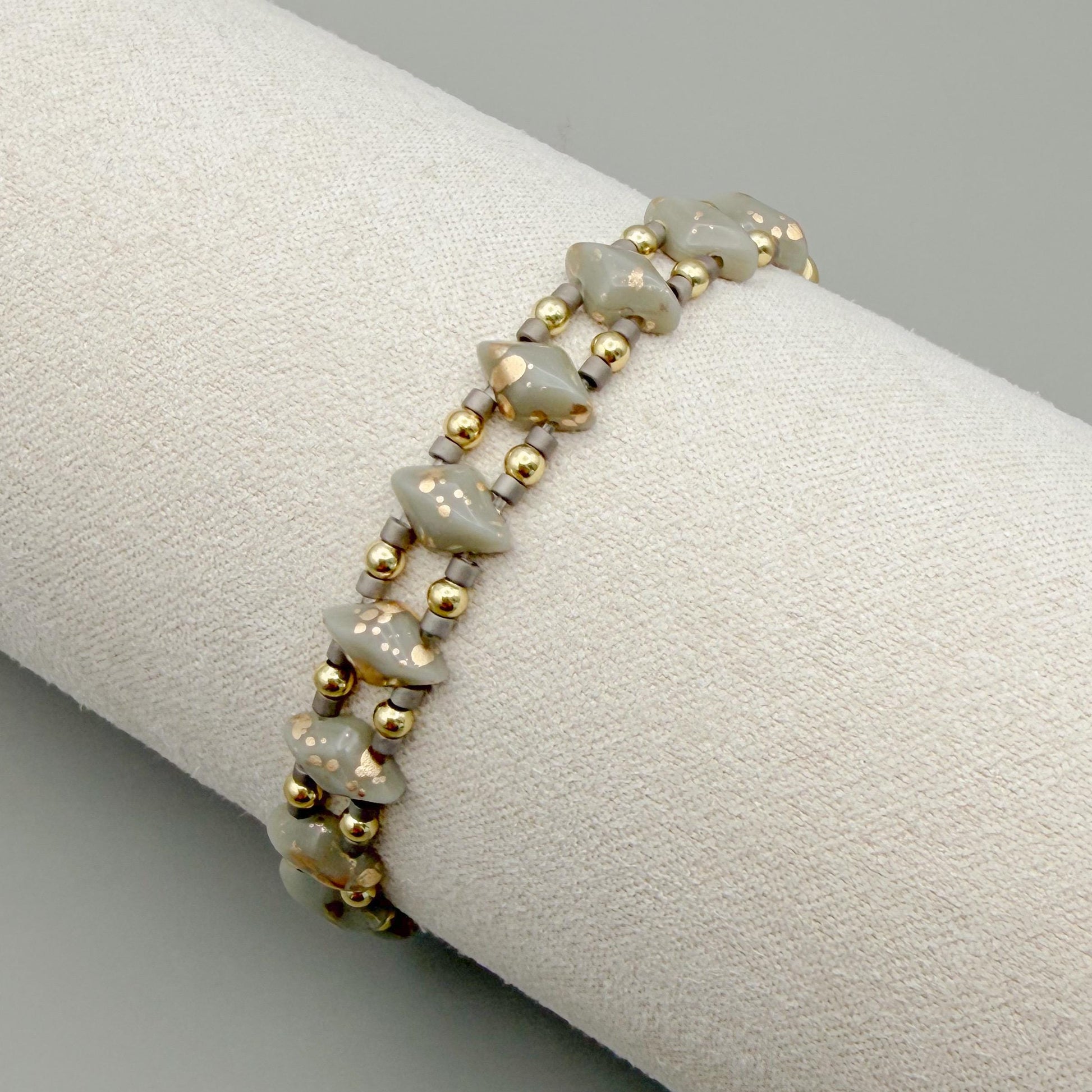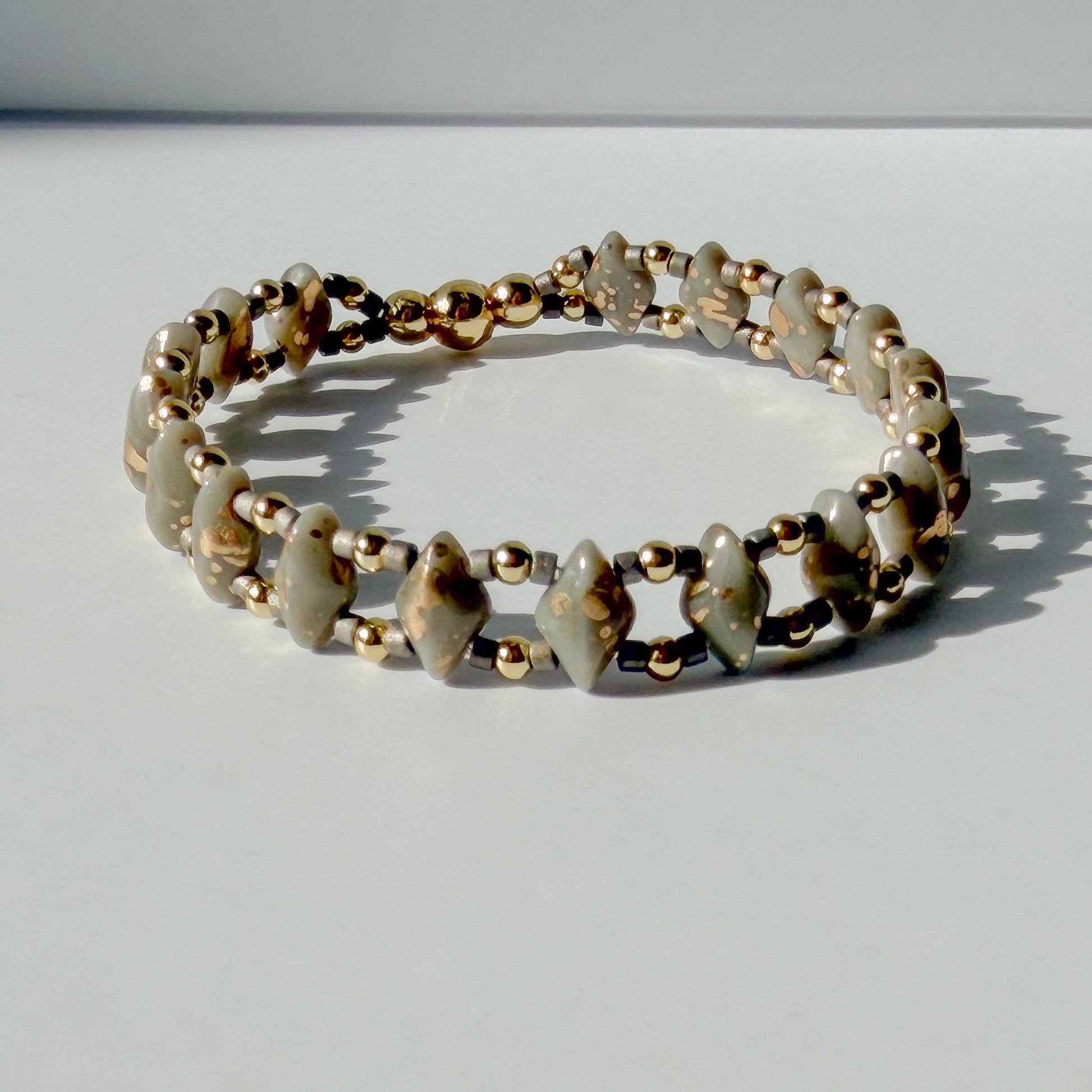 Misty Bracelet | 18k Gold Filled with Grey Diamond Shape Bead and Grey Seed Bead | Link Design | Beaded Stretch Bracelet | Dainty Bracelet |
