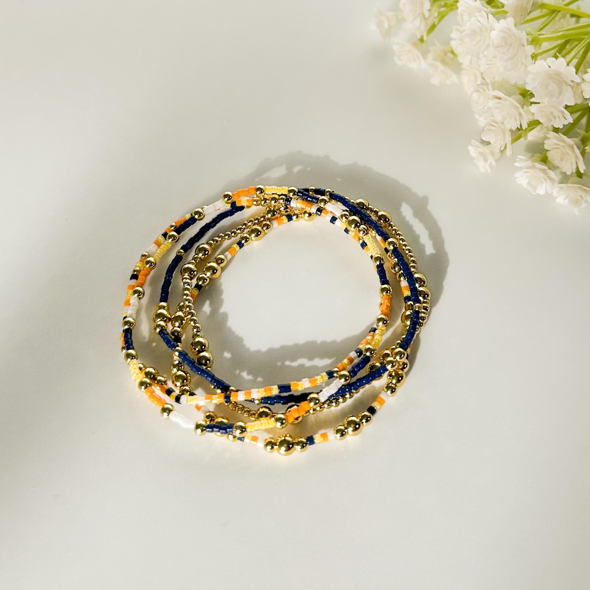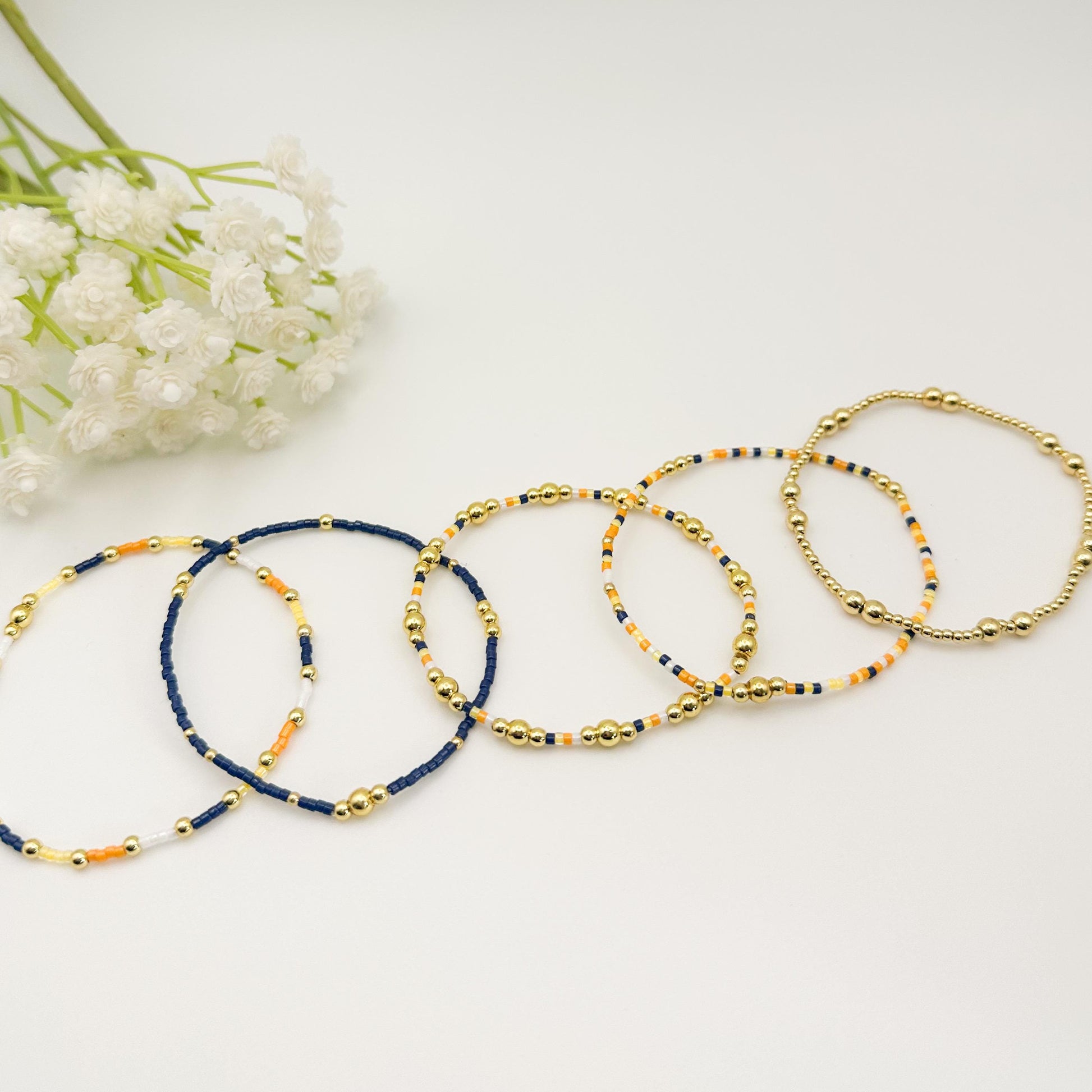 Sunkissed | 18k gold filled with navy, orange & yellow bracelet stack | beaded stretch bracelet | tiny bead bracelet | seed bead bracelets